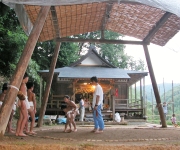 再建された神社境内で奉納相撲に向け練習に打ち込む子どもたち=市内西山町田沢 (2009/08/13)