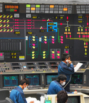 発電がスタートした東京電力柏崎刈羽原発7号機の中央制御室=19日午後6時59分