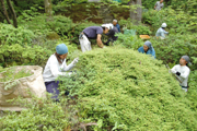 歴史ある庭で技術研修を行う県内外の造園関係者=市内高柳町岡野町の貞観園