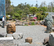 社員の手入れで巨石の庭園が新緑とツツジの季節=市内荒浜3、柏崎運送