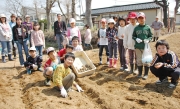 新田畑の“農園”でジャガ芋の種芋を植える子どもたち (2009/04/14)