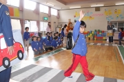 新1年生を対象に市が開催中の交通安全教室=26日、剣野保育園 (2009/02/28)