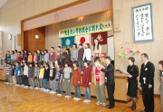 校舎お別れ式で感謝を込めてメッセージを述べ、歌に声をそろえた児童ら=北条北小 (2009/03/02)