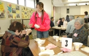 古代米の「笹ずし」を持参し、仮設のひな祭り交流会に駆けつけた大桃美代子さん (2009/03/03)