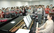 県民会館大ホールでのコンサートに向け、練習に張り切る寿大学合唱講座生=市民プラザ (2009/03/05)