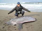 波打ち際に上がったヤリマンボウ=26日、市内宮川の海岸 (2009/01/27)