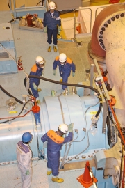 タービン軸受け部消火設備のガス放出を確認する市消防本部=30日、柏崎原発7号機 (2009/01/30)