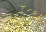柏崎さけのふるさと公園展示室の水槽で見られるサケの稚魚 (2008/12/28)
