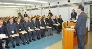 幹部職員に年頭のあいさつを行う会田市長=5日午前、市役所大会議室 (2009/01/05)