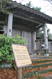 北条毛利氏の菩提寺専称寺。城の大手門を移築したと伝えられる山門と新しい案内看板 (2009/01/10)