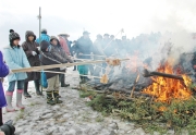 小正月の行事「さいの神」を行う黒滝町内会。燃える火に、震災からの復興を託した (2009/01/13)