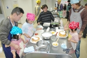 子どもと一緒にクリスマスケーキ作りに挑戦する柏崎オヤジ倶楽部の参加者 (2008/12/09)