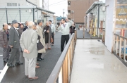 市内仮設住宅団地で市職員から説明を聞く東京・品川区荏原第5地区の一行=12日 (2008/12/13)
