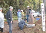 関係者が見守る中、妙法寺峠のふもとに道しるべを移設 (2008/11/06)