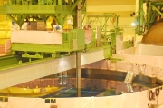 柏崎原発7号機の燃料装荷作業で、燃料交換機から炉心の目視点検を行う保安院検査官ら (2008/11/08)
