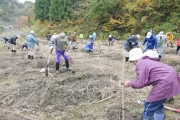 柏崎刈羽地域植樹祭で、栃ケ原ダムの左岸広場に木を植える参加者 (2008/11/10)