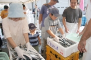 やおやまつり・おさかなまつりで大勢の人気を集めたサンマのつかみ取り=14日 (2008/09/17)