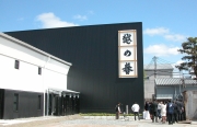 原酒造で再建された新しい酒蔵(左側)の玄関前でテープカットと工場披露 (2008/09/24)
