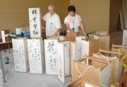 ふるさとまつりの中心イベントの1つである絵あんどんの準備作業=市内東本町1 (2008/08/12)