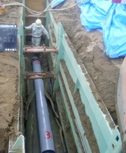 山本団地で、宅地の境界などに埋設が行われている暗きょ管 (2008/08/13)