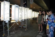 市内・外の作家による絵あんどんの作品に見入る人たち=14日夜、市内東本町1 (2008/08/16)