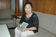 夫の故・志田憲弘(官親房)さんの小説集「松籟」を手にする妻テイさん (2008/08/19)