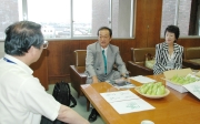 来夏から柏崎での合宿の決定を語る玉川大学野球部の福田監督(右から2人目)=市役所 (2008/07/28)