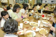 全員で作ったカレーを食べ、友情を深める日韓のガールスカウト=高柳町総合センター (2008/07/31)