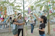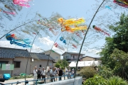 よしやぶ川沿い全長500メートル区間にわたる松美町の七夕飾り (2008/06/25)