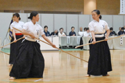 都道府県対抗なぎなた大会の演技で準優勝した本県の枡本・池田組=24日、ラピカ (2008/05/26)