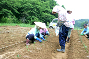 地域の伝統野菜「仙人菊」を植える市内西之入町内の人たち (2008/05/27)