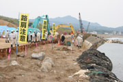 震災復旧工事現場で行われた関係機関・団体による合同安全パトロール=28日、市内北園町の海岸 (2008/05/29)