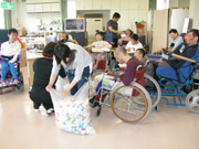 キャップ収集で活動企業の担当者と情報交換し、キャップをまとめる入院患者=新潟病院 (2008/05/30)