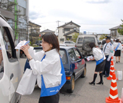 改正道交法施行を前に、ドライバーに全席シートベルトを呼び掛ける交通安全レディー=柏崎署 (2008/05/31)