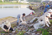 全市で行われた「クリーンデー柏崎」。関町では堤防の草刈りなどに精を出した (2008/06/02)