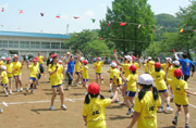 北条北小運動会でヒマワリのキャラクターを描いたTシャツで「よさこい」を踊る児童ら (2008/06/03)
