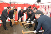 椎谷トンネル安全祈願祭で行われた国会議員や会田市長らによるくわ入れ (2008/05/14)