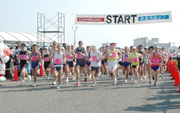 潮風マラソン・フルの部で一斉にスタートするランナー=みなとまち海浜公園 (2008/05/19)