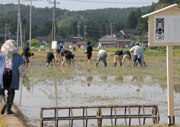 「阿弥陀如来」をモデルに、西山で田植えをする僧侶ら (2008/05/22)