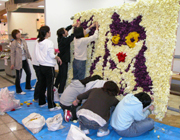 パネル3枚に、チューリップで「猫」の花絵を作る参加者=市内東本町1、フォンジェ地下 (2008/04/21)