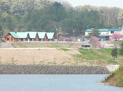 後谷ダムの人工湖(手前)が水をたたえ、湖畔の雰囲気が出てきた「ゆうぎ」 (2008/04/25)