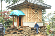 曳家工事が行われている清瀧寺の宝蔵 (2008/04/28)
