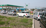 暫定税率復活を前に順番待ちの列ができた市内のガソリンスタンド=30日午前 (2008/04/30)