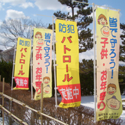 一層の安全・安心へ期待を託したのぼり旗=田尻コミセン前 (2008/03/31)