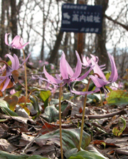 市内西山町・高内山の遊歩道沿いで満開となったカタクリ=2日 (2008/04/03)