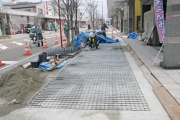 上2層を取り除き、新しい電熱線を敷く工事が進められている市内東本町1の歩道 (2008/02/23)