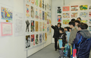 県ジュニア美術展覧会・柏崎展で作品を見る上米山小の児童たち=ソフィアセンター (2008/01/31)