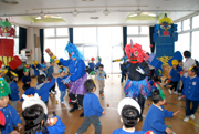 節分を前に、元気よく豆まきをする園児たち=1日、枇杷島保育園 (2008/02/01)