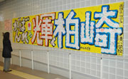 長野・岡谷市の湊小学校から送られた励ましの横断幕=市民プラザ (2008/01/18)