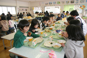 郷土料理をテーマにした給食の献立に「おいしい」と子どもたち=22日、柏崎小 (2008/01/23)
